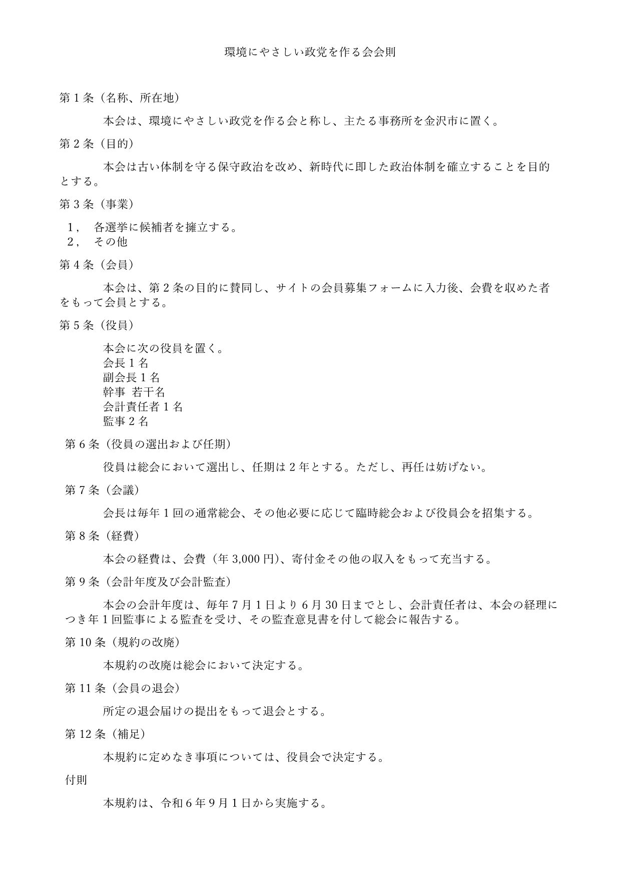 会員募集 未来のために、行動しませんか? 私たち「環境にやさしい政党を作る会」は、持続可能な社会を実現するための活動を進めています。地球温暖化や人口減少、教育改革など、未来を担う子どもたちのために、今こそ変革が必要です。私たちと一緒に、環境に優しい政治を実現しましょう。ぜひ会員としてご参加いただき、未来に向けたアクションを共に起こしましょう! 会費納付先 金沢信用金庫 森本支店 普通 106577 読み込んでいます…
